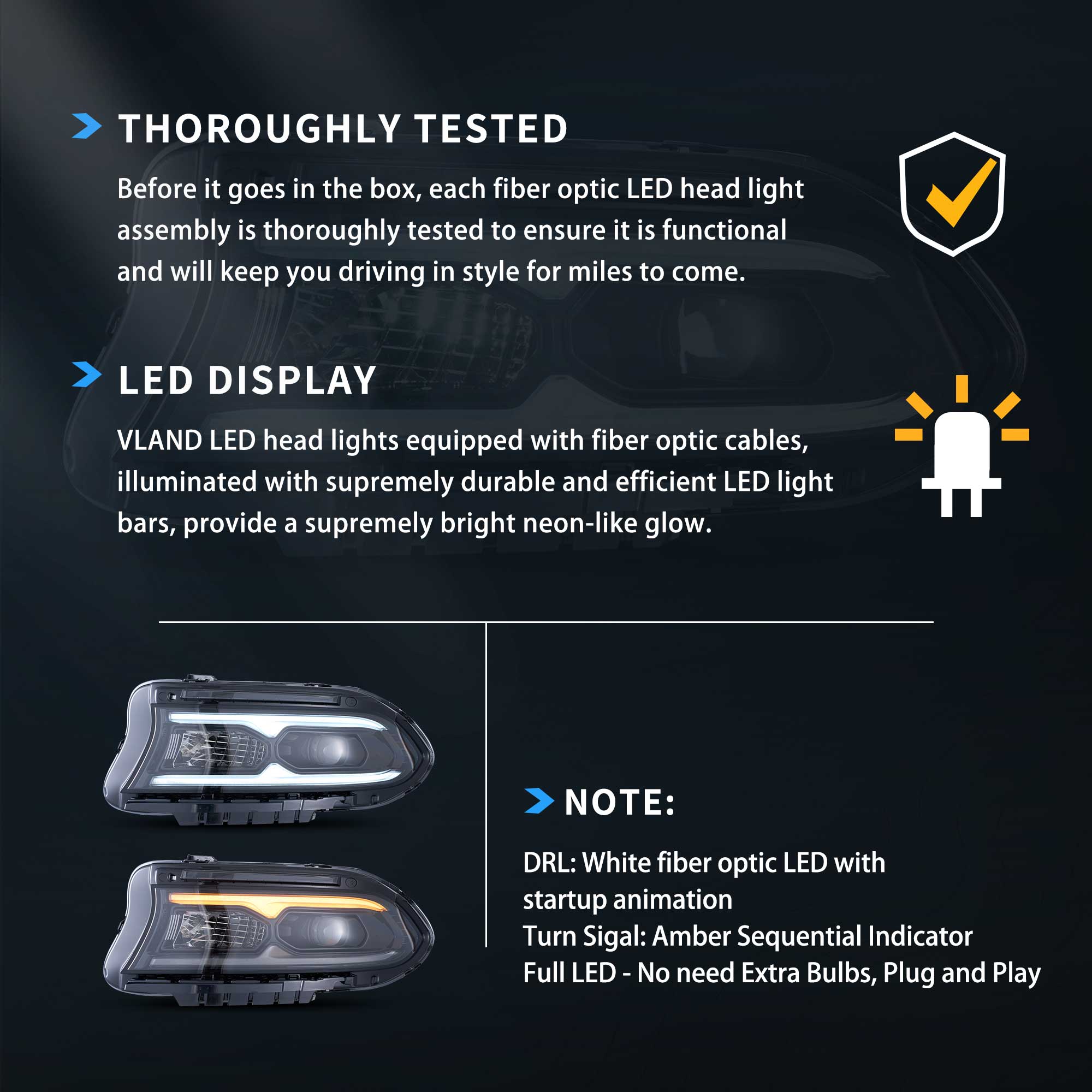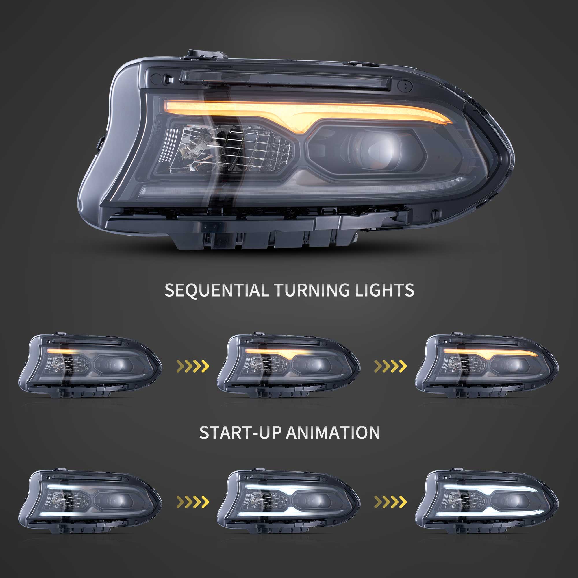 2015-2023 Dodge Charger Halogen Models Vland Projector Headlights