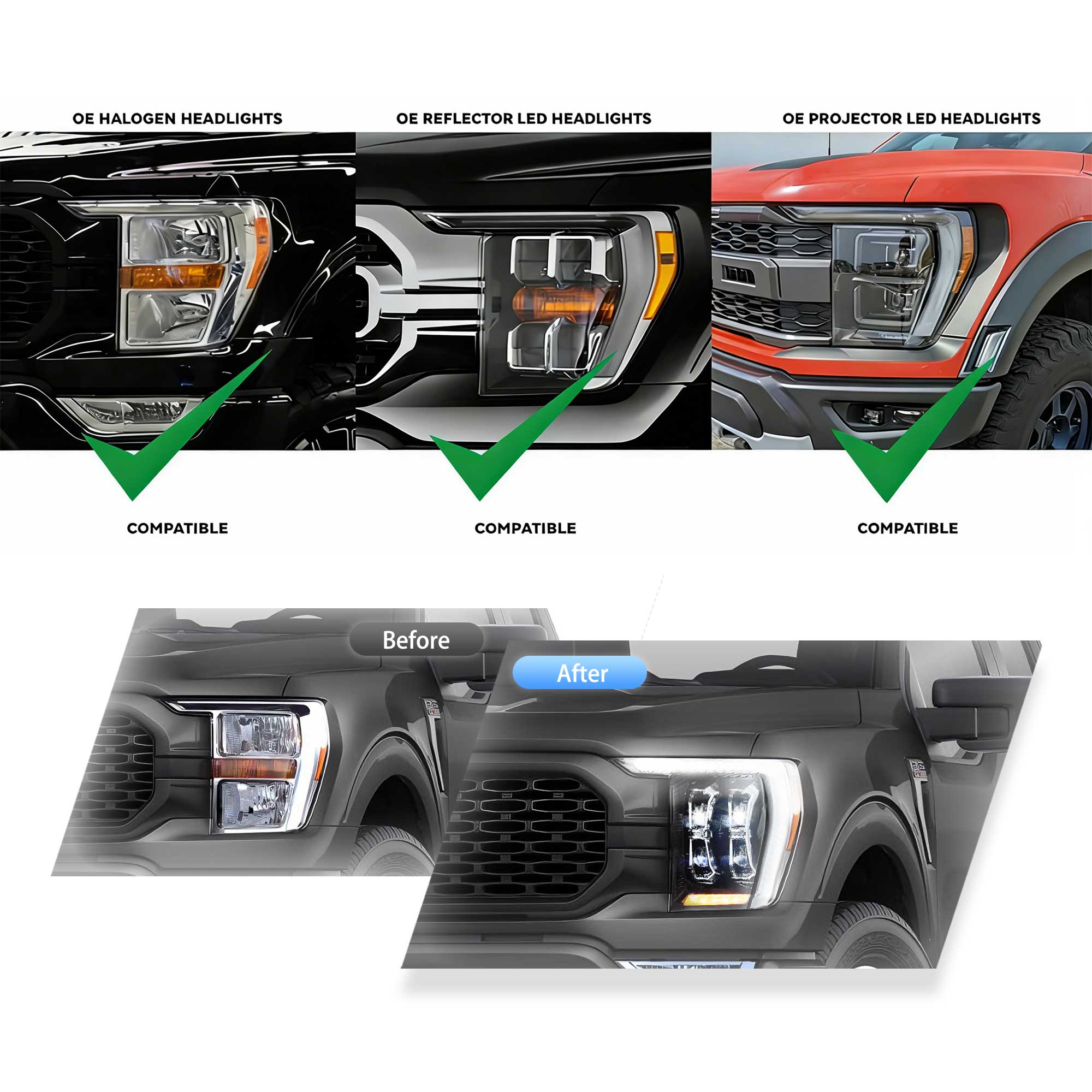 21-23 Ford F150 14th Gen Vland Projector Full LED Matrix Headlights Upgrade